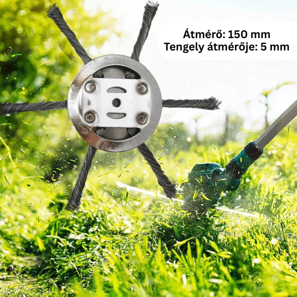 Ez a kiváló minőségű szénacél huzalból készült trimmerfej kopásálló, és egyenletes, mély vágási teljesítményt biztosít. Tökéletes a gyomok, moha vagy akár a rozsda teljes eltávolítására.